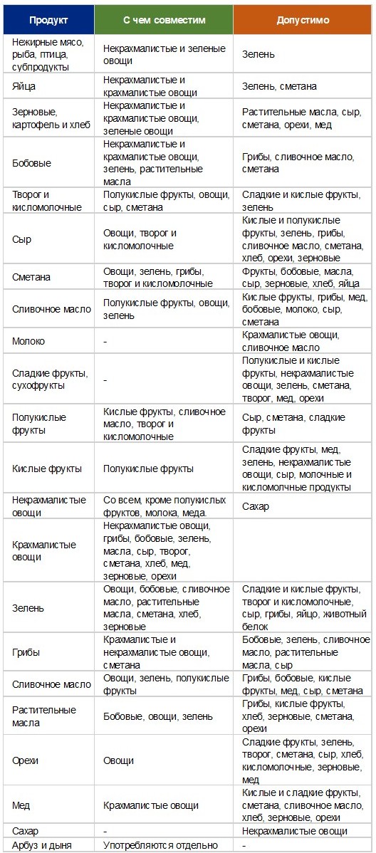 сочетаемости продуктов Герберта Шелтона