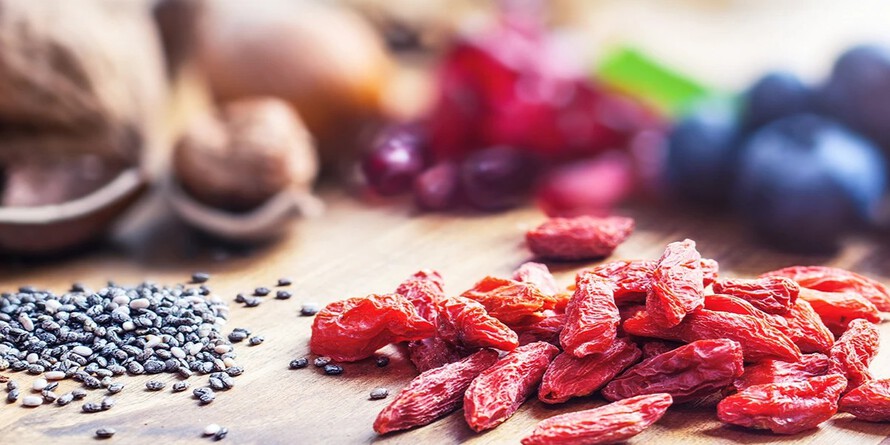 популярные суперфуды — это ягоды годжи, спирулина, киноа, семена чиа,